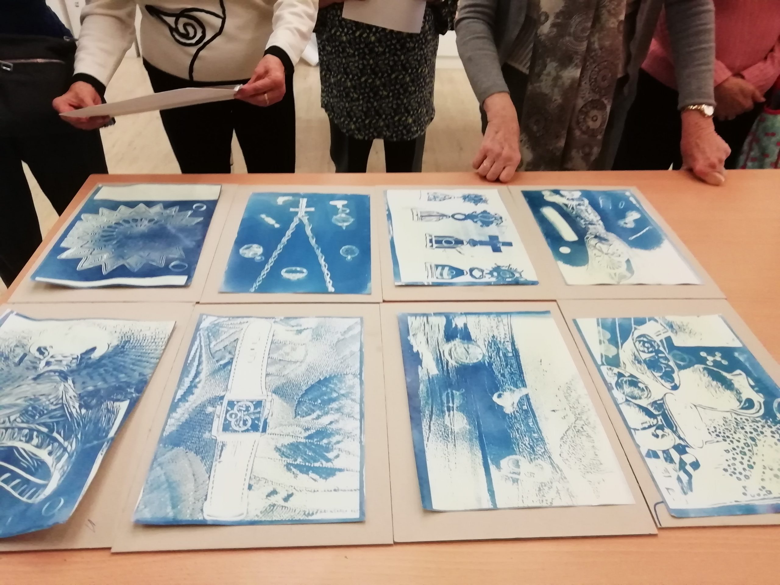 Terminamos la tarde con un taller de cianotipia plasmando nuestros objetos.